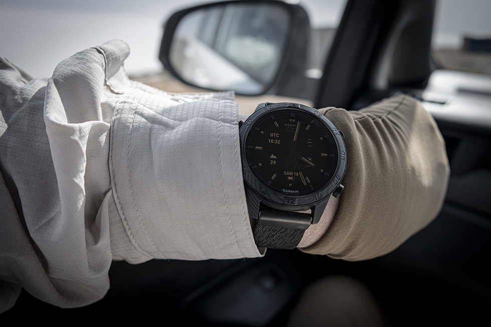 This particular timepiece feels a bit like the “Swiss Army knife” of smartwatches. I love the Fused Carbon Fiber look, which makes it a perfect blend between tactical and luxury: at home in the field or at the cocktail bar of my hotel. But beyond its clean look and design, the MARQ Commander Carbon Edition comes with an impressive list of applications and embedded sensors for the demanding professional. With a reasonable 10 ATM waterproof rating, the tool watch includes a multi-band GPS that can even be put in “stealth mode”, and a “kill switch” that will instantly erase all your precious personal data stored inside the watch in case of any trouble.