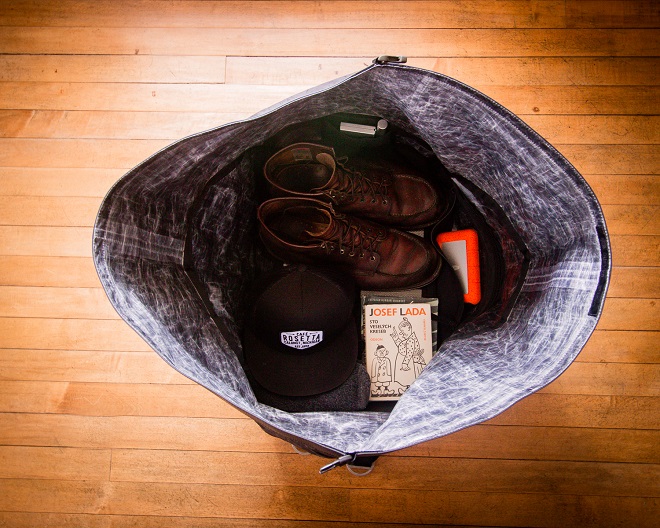 The nature of the Dyneema and the height this bag stands open make for a very accessible grey crinkly hole from which to work from. I’ve found it much more convenient having the Dufflepack next to my desk than a backpack or briefcase when working out of it. When fully opened the Dufflepack is a hefty 78 liters. With simple interior organization and a load of space to work with I’m very impressed with the workability of this bag.